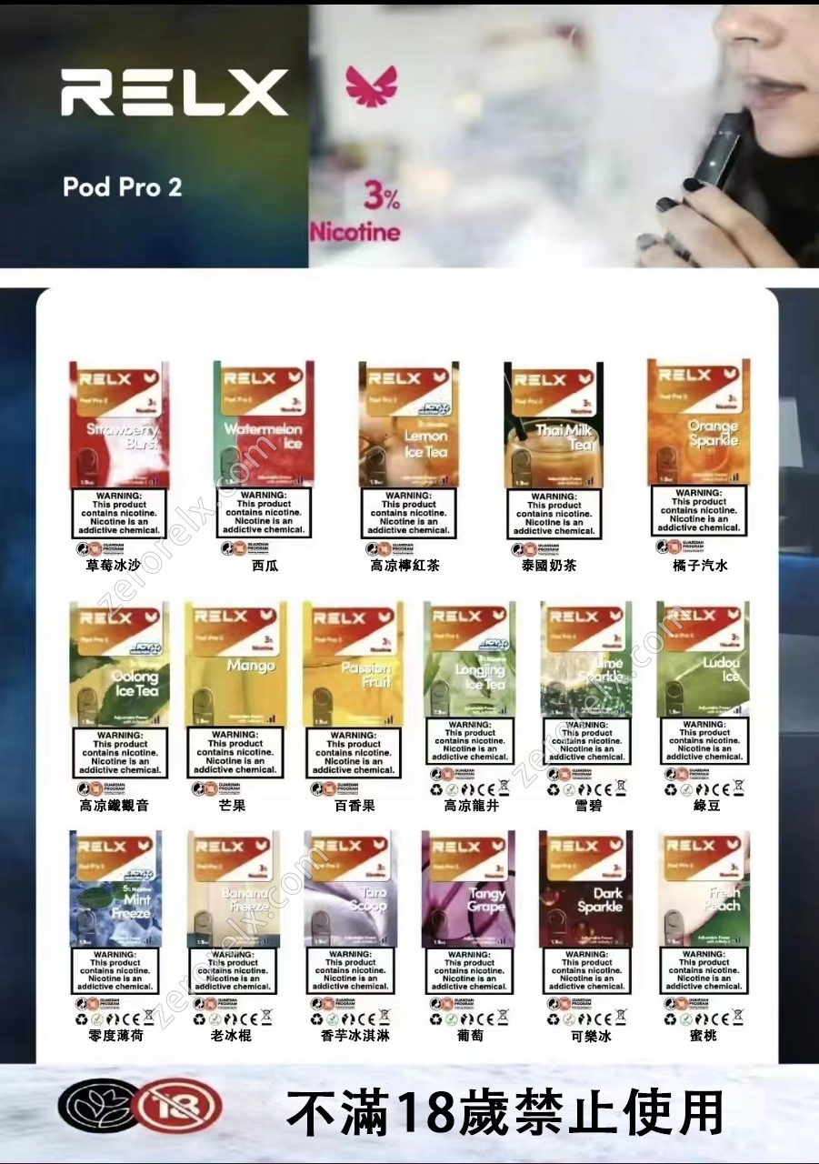 RELX悅刻六代煙彈,主打更強的霧化體驗與冰涼口感,共有29種口味推薦,常見口味包括冰爽紅茶、西梅、勁爽薄荷及芒果等,並具有高保真防漏設計。RELX六代煙彈通常與四代、五代主機通用,每顆預填充 1.9ml 煙油,適配性高,適合追求濃郁口感與高冰涼度使用。