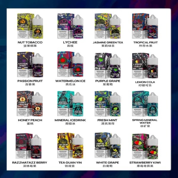 - 多口味選擇: SP2S 煙油擁有16種口味選擇,滿足不同喜好。